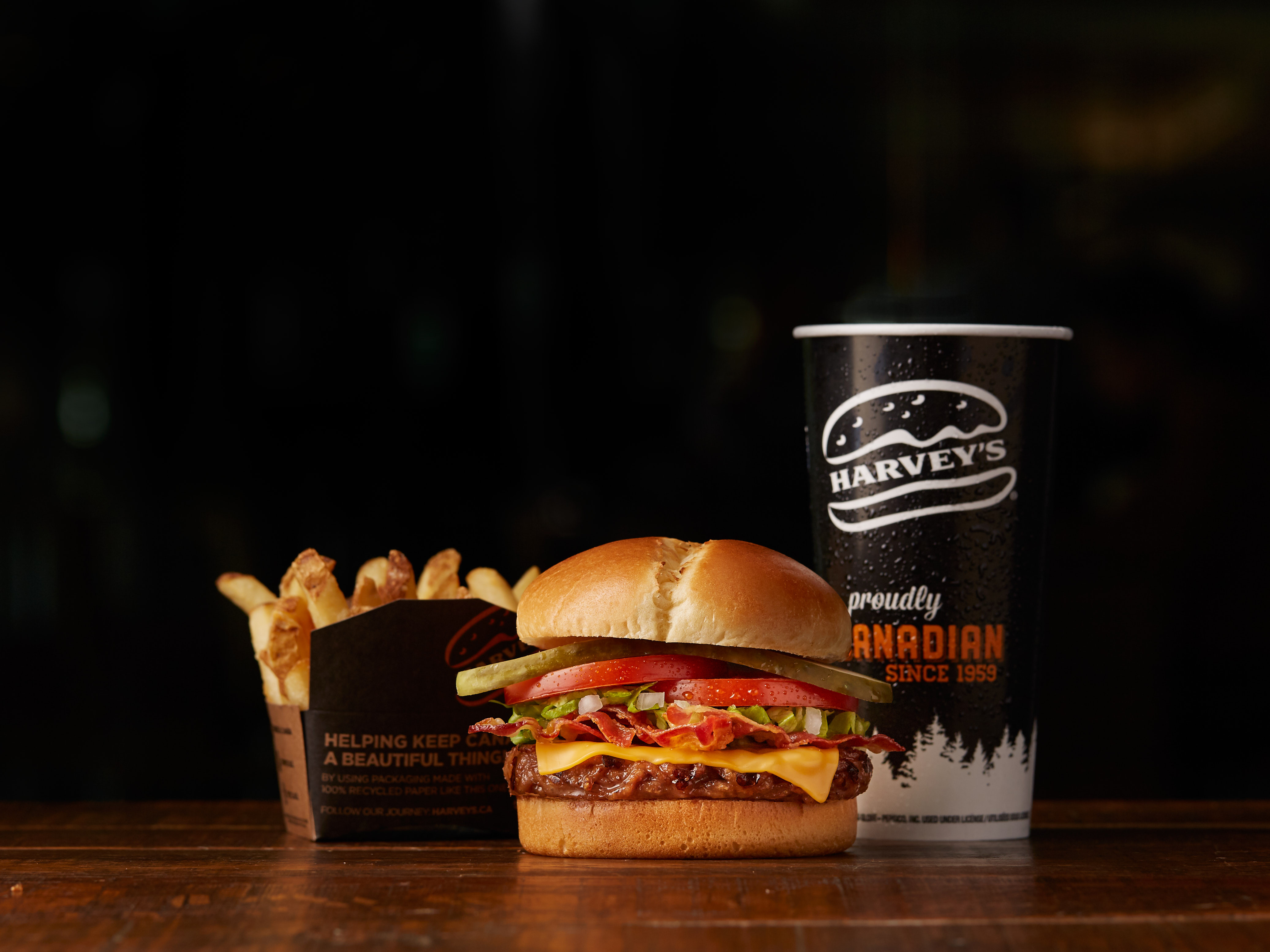 Indulge in a famous flame-grilled burger from Harvey’s and have it your way by dressing it with your favourite topping